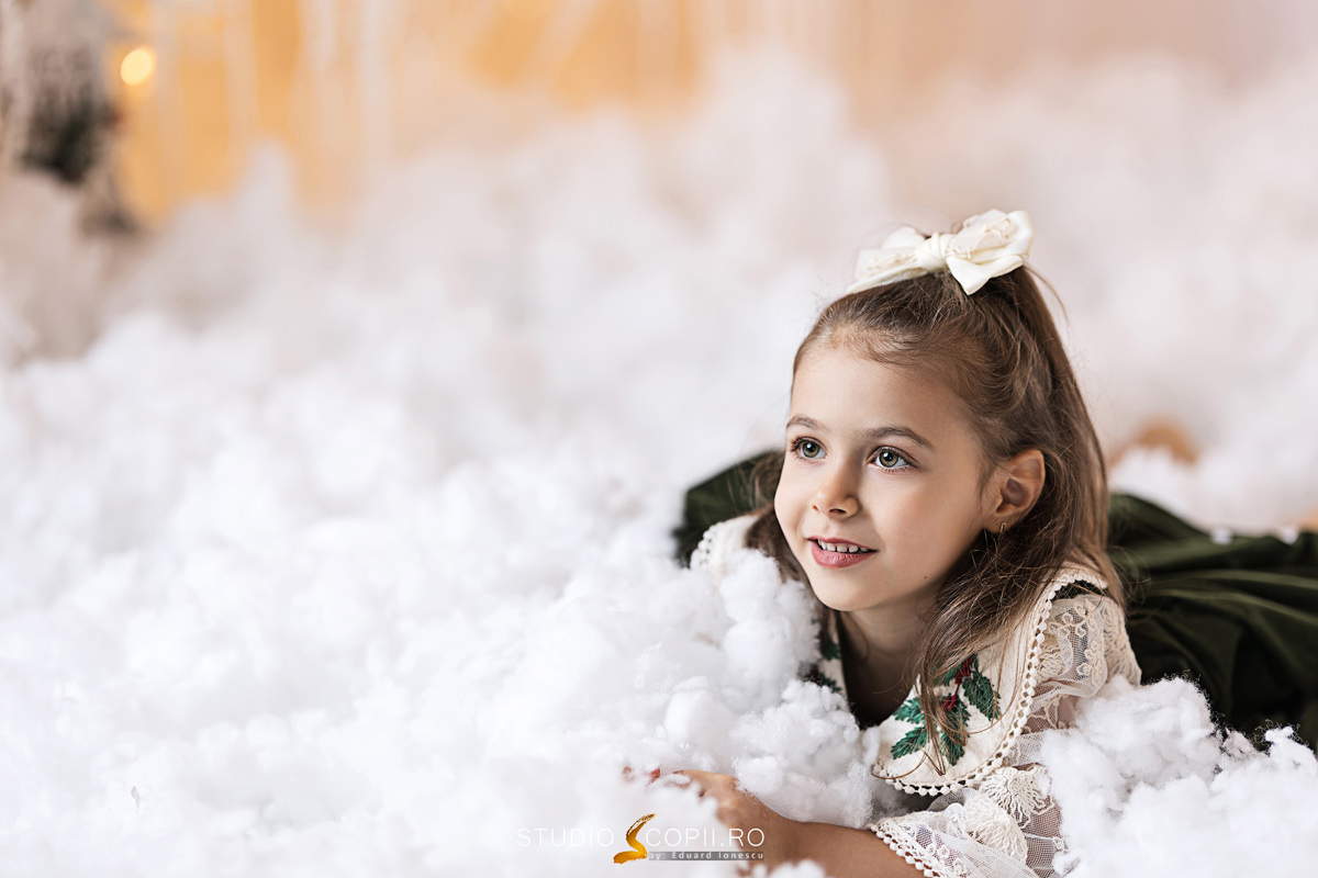 Studioul nostru oferă și ținute pentru copii cu vârste între 1 și 5 ani, atât pentru fetițe, cât și pentru băieței, alese cu grijă pentru a se potrivi perfect decorului și atmosferei Crăciunului.