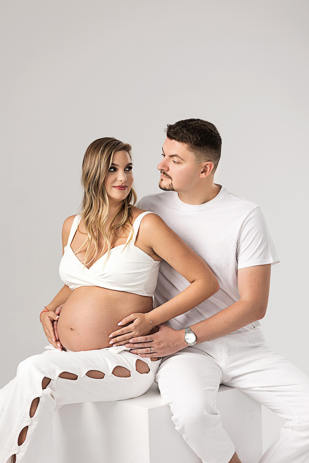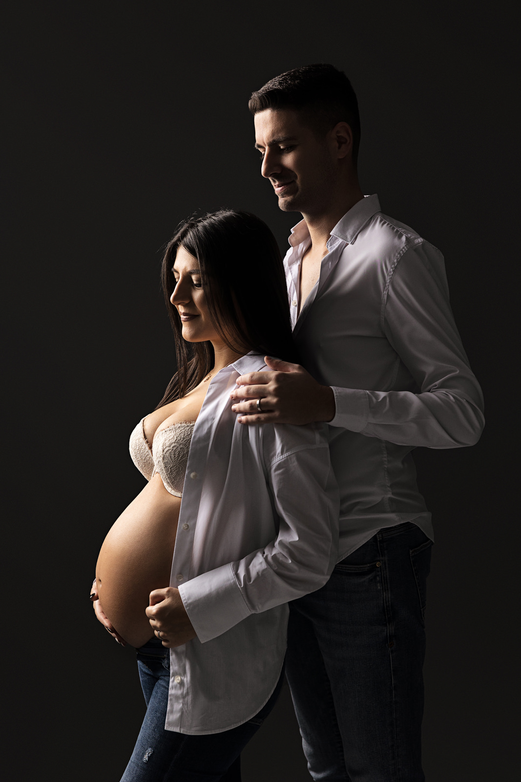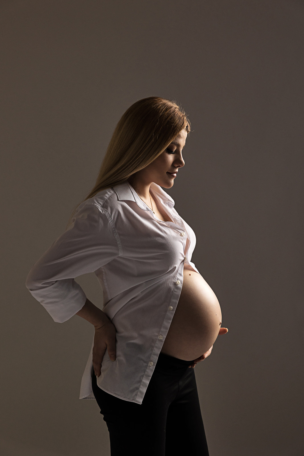 Totul pornește de la lumină. În studio, mă joc cu lumina ca să creez atmosferă, să pun în evidență burtica, expresiile și chiar micile detalii. Folosesc umbre delicate, unghiuri bine alese și accente de lumină care îți conturează silueta, fără să pară forțat sau regizat. Nimic nu e la întâmplare – e genul acela de lumină care te face să arăți exact așa cum te vezi tu în zilele bune.