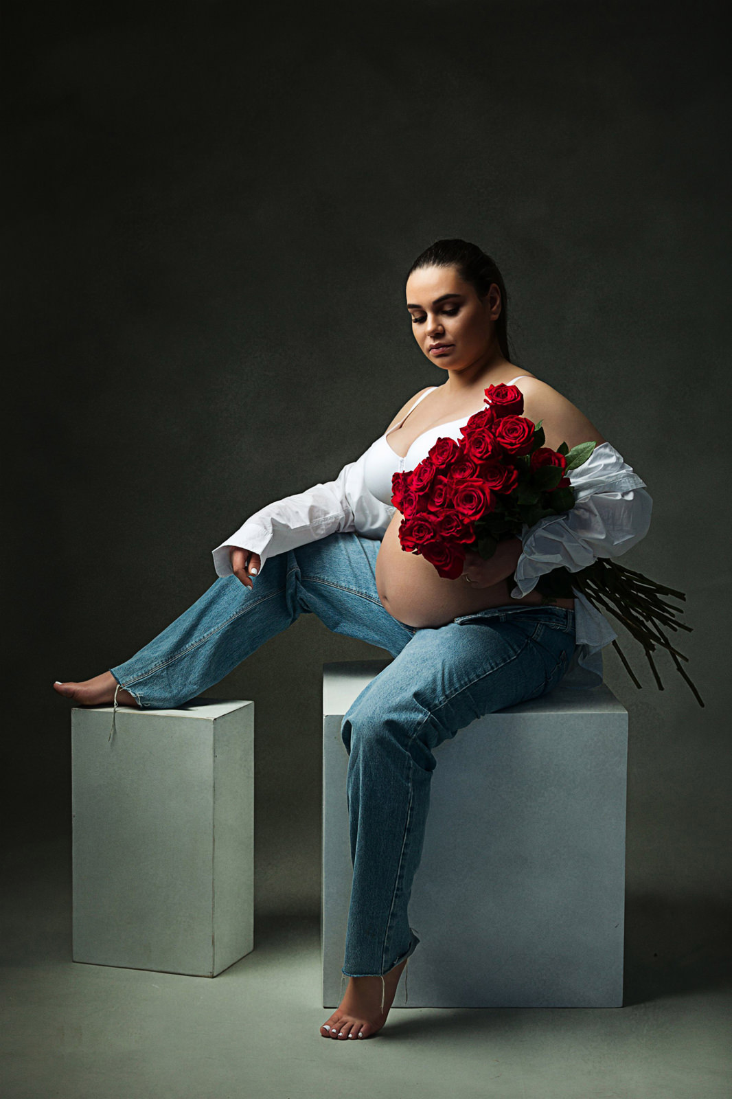 Ședința foto în blugi în studio e doar pretextul perfect ca să vezi cât de minunată ești în această etapă din viața ta.